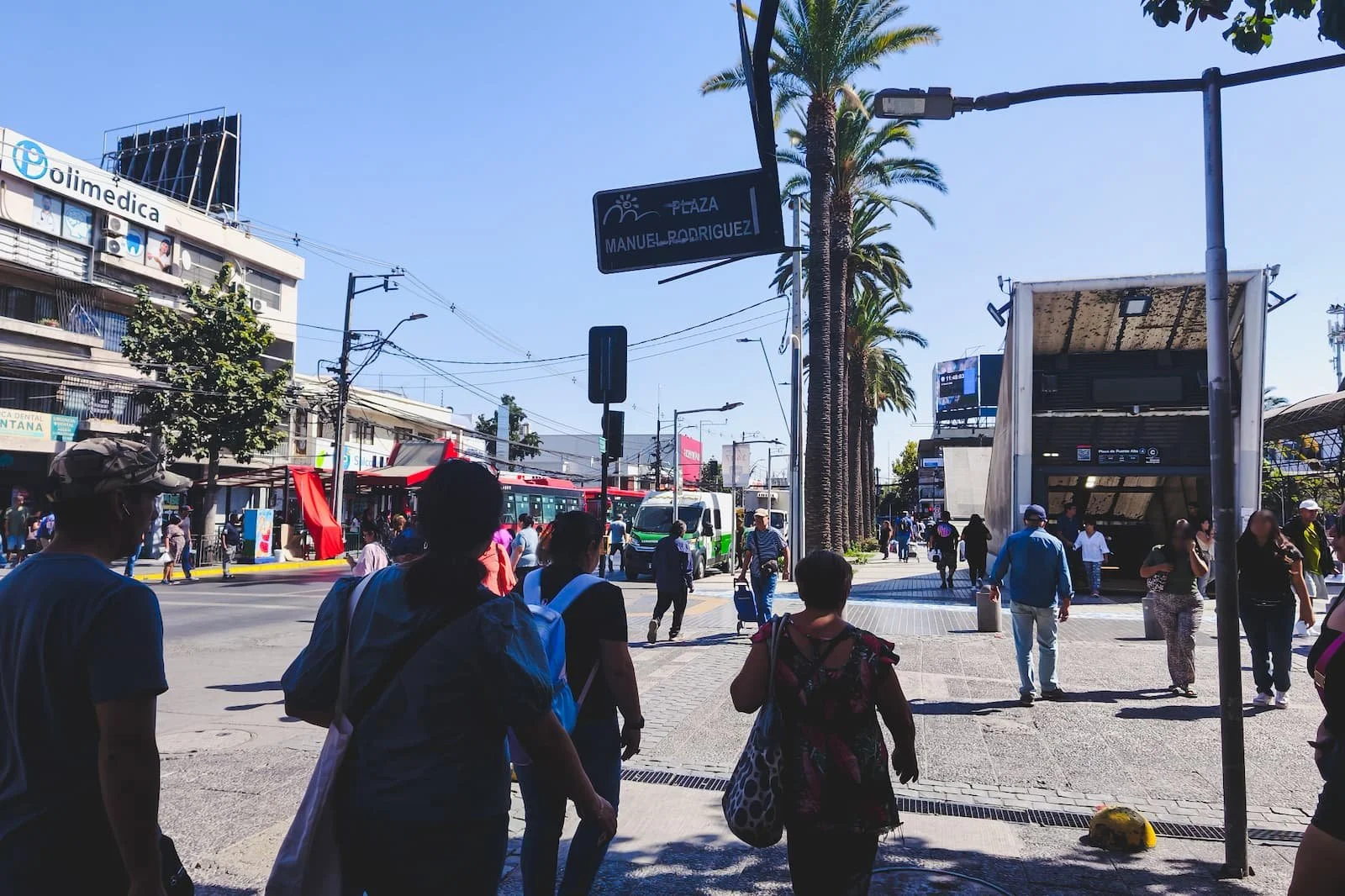 Outside Plaza de Puente Alto station before taking a short rideshare to Pirque.