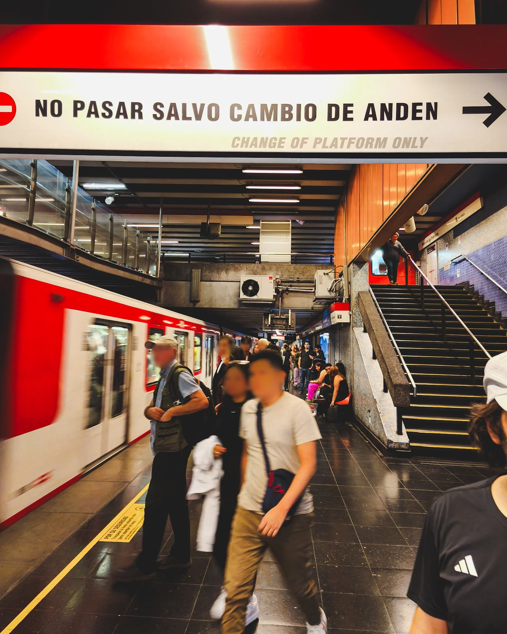 People are generally organized and respectful around the Santiago metro (much more so than the New York City one for example) – if the platform is crowded, wait your turn to get on the train (after people get off and people in front of you get on), and don’t hold up the train doors.